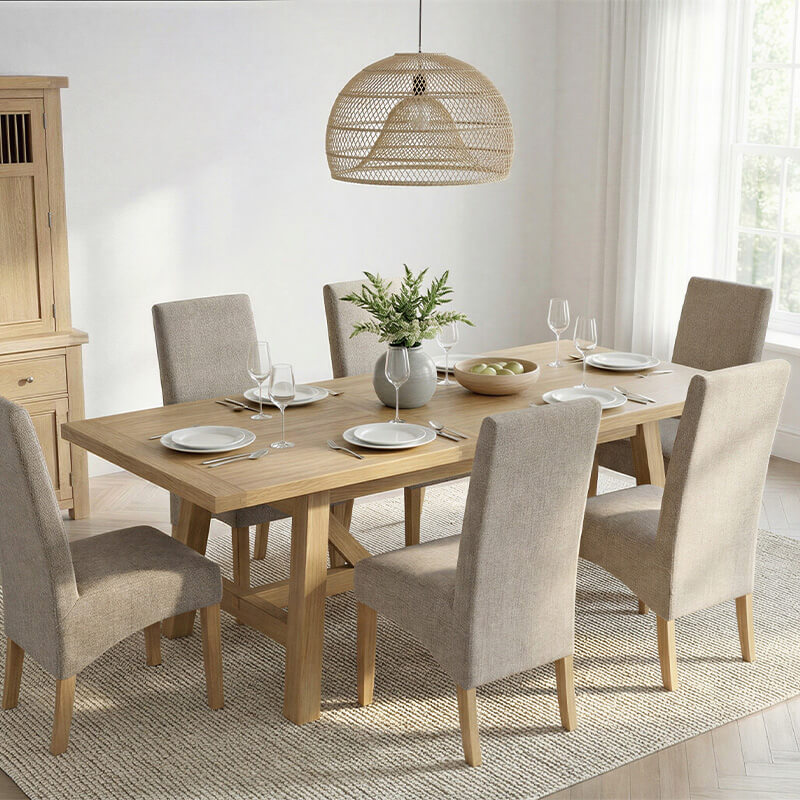 Delaney Extending Refectory Dining Table 1900-2350 in Oak combines traditional charm with everyday functionality., it includes an extension leaf to comfortably accommodate extra guests. Perfect for both family meals and entertaining, this timeless piece adds warmth and character to any dining space.