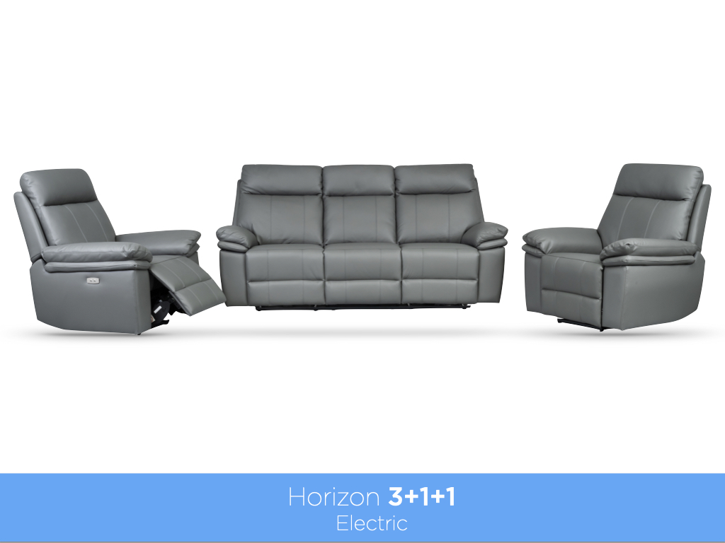 Experience the perfect combination of luxury and modern design with our Electric Reclining Suite, available in premium full leather and leather match upholstery, in sleek Dark Grey and Black. This suite offers the ultimate in comfort, with smooth electric reclining mechanisms that allow you to effortlessly adjust to your ideal lounging position at the touch of a button. The rich leather finish adds sophistication and durability, making it a timeless addition to any living space. The Horizon Suite delivers elegance, comfort, and convenience in every detail.